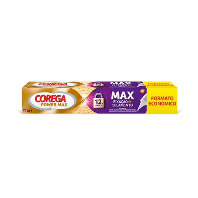 Corega Máximo Sellado é um creme fixativo para próteses dentárias que ajuda a bloquear a entrada de alimentos, oferecendo um selamento superior.