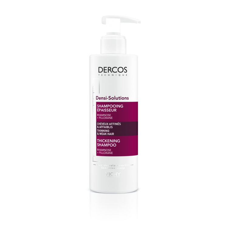 Champô densificador para cabelo fino e enfraquecido. Purifica o couro cabeludo e revitaliza o cabelo. Fortalece a fibra capilar, para cabelo mais suave e visivelmente mais espesso* Para mulheres com cabelo fino e enfraquecido, sem volume, diminuição da ma