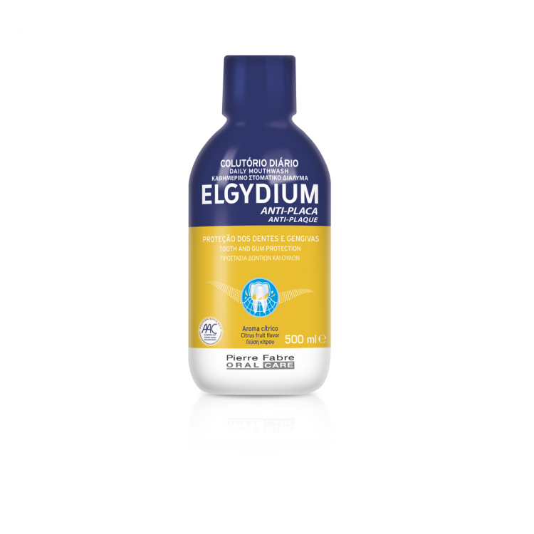 O colutório ELGYDIUM Anti-placa contém dois ingredientes ativos: os polifenóis de grainha de uva e o Fluorinol®, que combinados formam um complexo autoadesivo (CAA) patenteado. Este complexo sinergético funciona inibindo a formação da camada bacteriana ("biofilme") que se forma sobre os dentes após as refeições. Os polifenóis atrasam a formação da matriz polissacarídea do biofilme e o desenvolvimento bacteriano. O Fluorinol® reforça a ação dos polifenóis e permite uma fixação intensa do flúor no esmalte, tornando-o mais resistente, ao mesmo tempo que impede a proliferação das bactérias responsáveis pela placa bacteriana.