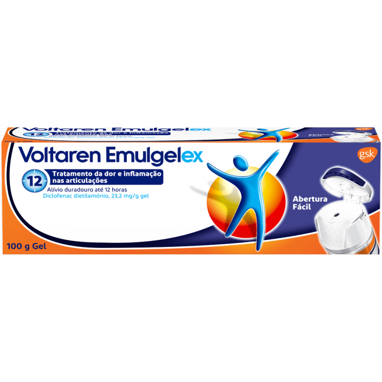 Voltaren Emulgelex 100g, com uma nova abertura fácil que pemite facilidade na utilização, com um design ergonómico mais intuitivo, é um medicamento não sujeito a receita médica, que atua na zona afetada, aliviando a dor e reduzindo a inflamação. Penetra em profundidade na pele com o dobro da concentração*, proporcionando um alívio prolongado da dor até 12 horas. *Comparado com Voltaren Emulgel