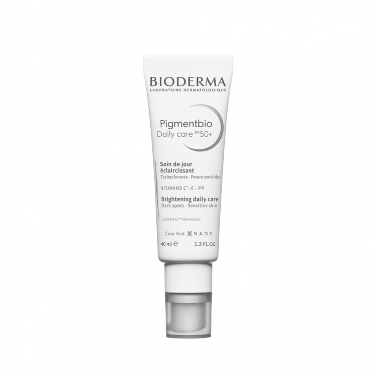 O Pigmentbio Daily care SPF50+ incorpora a TECNOLOGIA LUMIREVEAL™ que revela a luminosidade original da tez. Ajuda a reduzir a produção de melanina e estimula a renovação celular para um efeito aclarador corretivo e preventivo. Os filtros anti- UVA/UVB e as vitaminas C* e E antioxidantes que atuam de forma sinérgica para reforçar a ação aclaradora do tratamento e evitar os sinais visíveis de envelhecimento precoce. Muito boa tolerância. Fórmula perfumada. Não comedogénico.