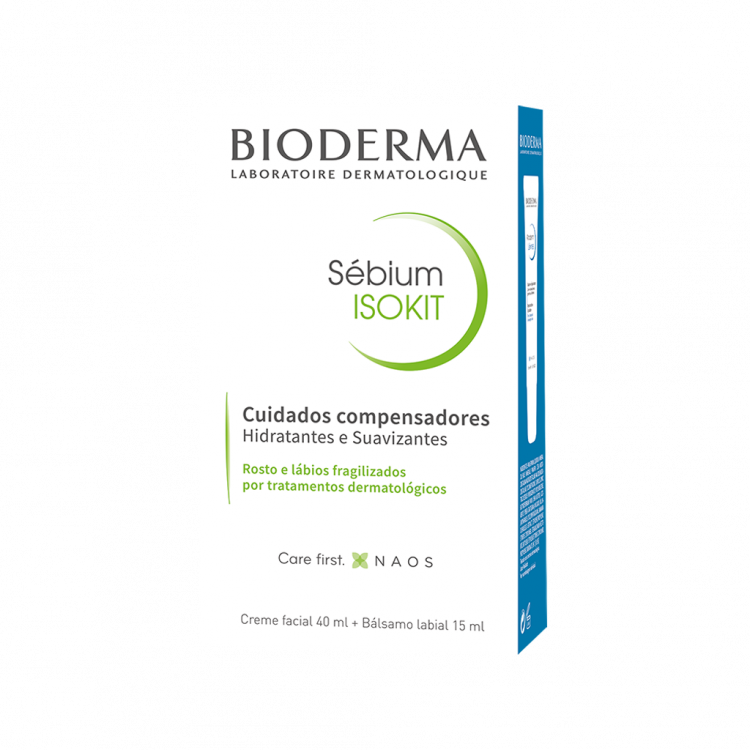 Cuidado compensador de rosto e lábios para tratamentos com isotretinoína oral. Inclui os produtos: Sébium Hydra + Atoderm Bálsamo Labial