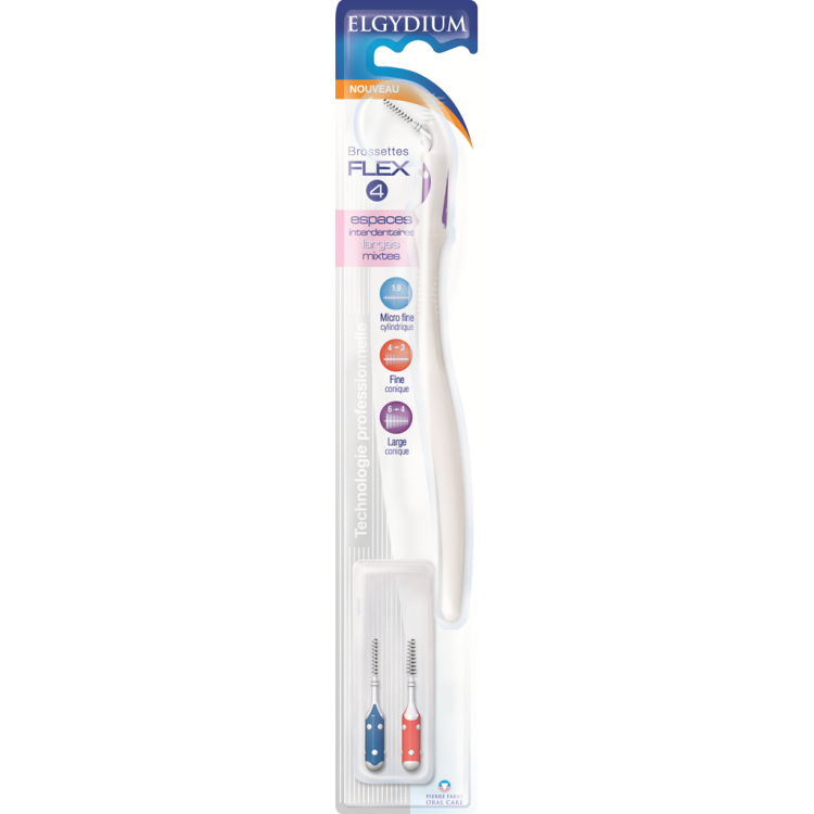 ELGYDIUM CLINIC ESCOVILHÃO FLEX é um escovilhão de cabo longo, que permite uma utilização das diferentes medidas de escovilhões ELGYDIUM CLINIC em duas posições, para uma higiene fácil e otimizada de todos os espaços interdentários: inclinação 120° (para os espaços posteriores) e 180° (para os espaços anteriores).