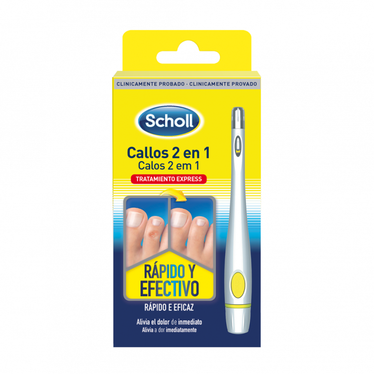 O Tratamento Express 2 em 1 para Calos é um modo revolucionário, altamente eficaz e rápido para tratar os calos. É adequado para os calos em cima dos dedos, na planta do pé e nos calos moles (entre os dedos). Não é adequado para calos neurovasculares. É r