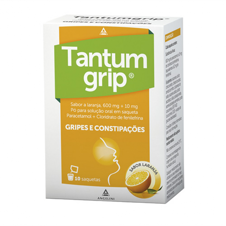 Tantumgrip sabor a laranja, 600/10 mg x 10 pó sol oral saq